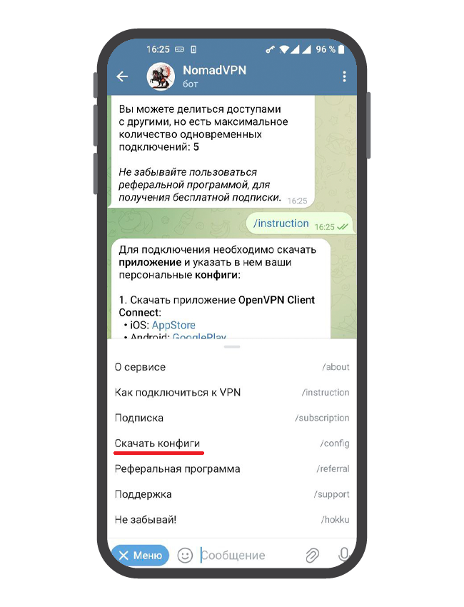 Оплатите тариф через нашего Telegram-бота и запросите у него конфиги